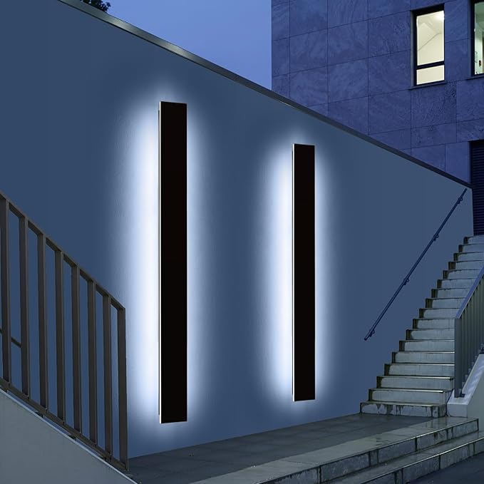 - 【Dimmable Long Wall Light】Outdoor lighting fixture dimensions: 23.6/31.4/39.3/47.2/57/71 inch x 5.5 x 1.4 inch, voltage: AC 85V-265V. IP65 waterproof, short circuit protection design for safer use,It offers three color temperature options to meet various lighting needs. (3000k/4500k/ 6000k). The brightness can be adjusted from 1% to 100% with the remote control, and it has a memory function to retain the last setting for 15-20 seconds and will keep the wall light off when switched off and back on