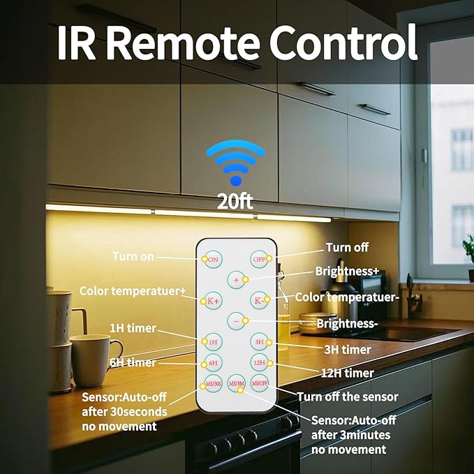 - Smart Motion Sensor & Timer for Convenience: Equipped with a motion sensor that can be set to 30 seconds or 3 minutes, these motion sensor lights ensure hands-free operation. The timer function supports 1-hour, 3-hour, 6-hour, and 12-hour auto-off settings, making these energy-efficient LED strips perfect for modern home lighting and workspace lighting.