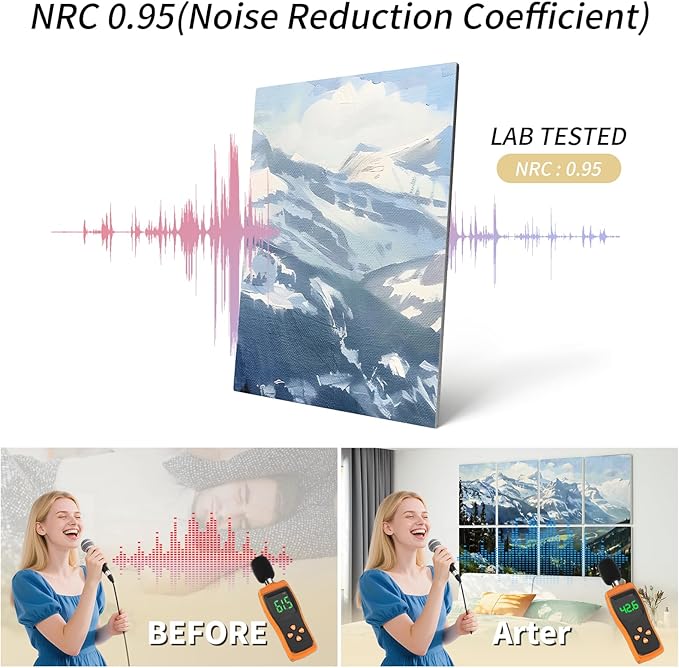 - Multi-Room Versatility: Ideal for recording studios, home theaters, offices, guest rooms, and any echo-prone space. These acoustic panels improve sound clarity while elevating your interior design with a stylish acoustic wall art touch