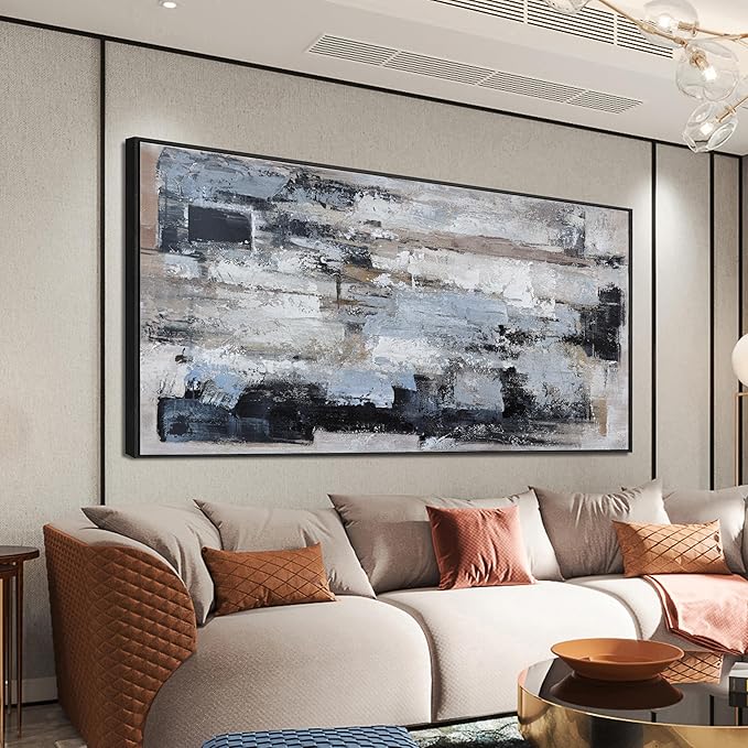 KUPTEU Canvas Oversized Wall Art Decor Large Wall Art For Living Room Framed Blue Abstract Wall Art Prints Abstract Art Abstract Canvas Art Wall Decor Artwork For Walls Home Office Wall Decor 29"x58"