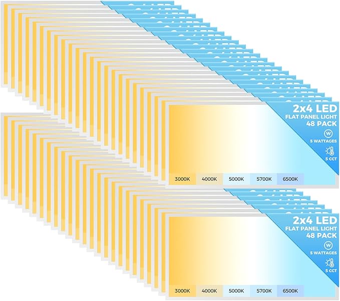 AIKVSXER 48 Pack 2x4 LED Flat Panel Light, Bright 9100LM Office Kitchen LED Flush Mount Ceiling Light Fixtures,Dimmable,Switchable 5CCT 3000K/4000K/5000K/5700K/6500K, 5 Wattages 30W/40W/50W/60W/70W