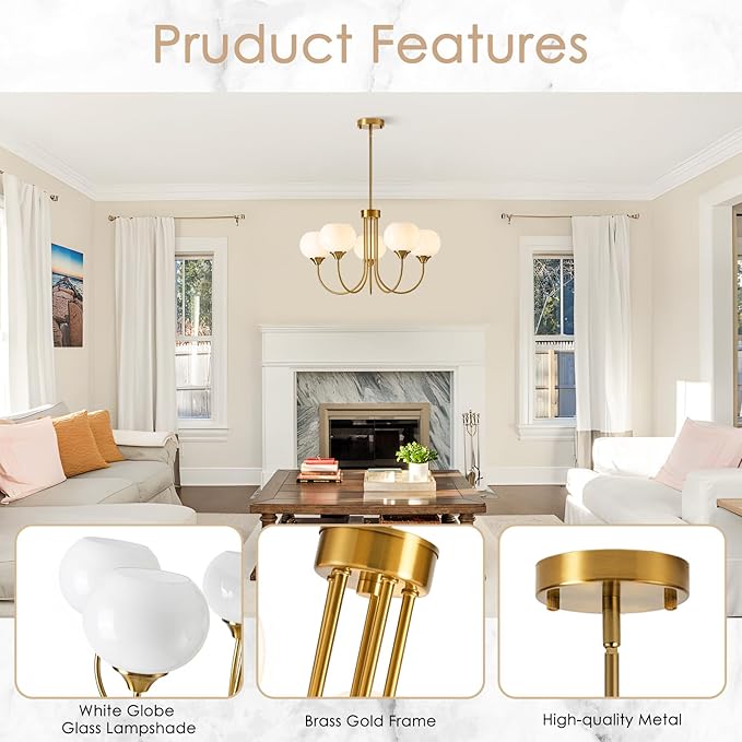 - 【Satisfactory Customer Service】This chandelier includes 5 glass globes, if the glass is broken in transit, you can connect the store to send you a replacement glass shade. We offer a full one-year warranty and excellent customer service for our light fixtures. Any problems you encounter can contact the store to help you solve
