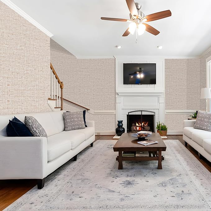 - Faux Grasscloth Wallpaper:The surface of this removable wallpaper designed with faux linen pattern, looks more distinctive, forming a vintage style, brings a soft and comfortable atmosphere