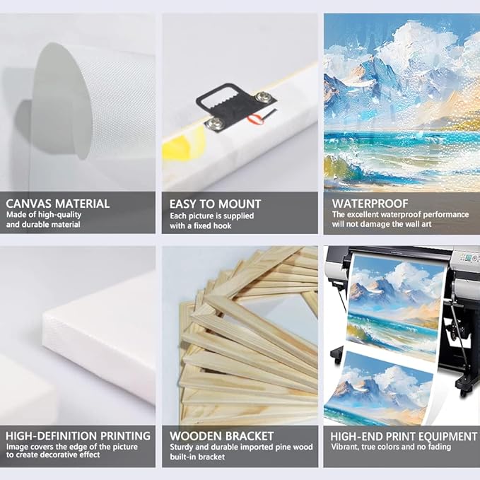 - Features:High-definition canvas painting, our products are more difficult to fade. Due to different monitor brands, the actual wall painting color may be slightly different from the product image