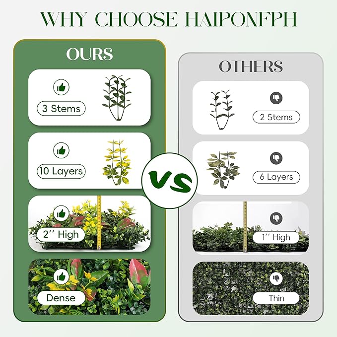 - Transform Any Space: Haiponfph Artificial Hedge Grass Wall Panels provide a lush, lifelike green wall backdrop, ideal for enhancing patios, balconies, offices, and living spaces