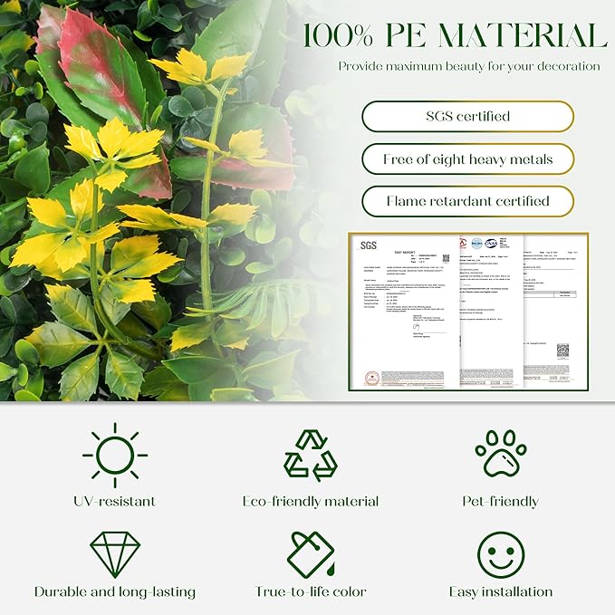 - Superior Quality & Durability: Crafted from high-density polyethylene (HDPE), these panels are weatherproof and UV-resistant, ensuring vibrant greenery for years without fading