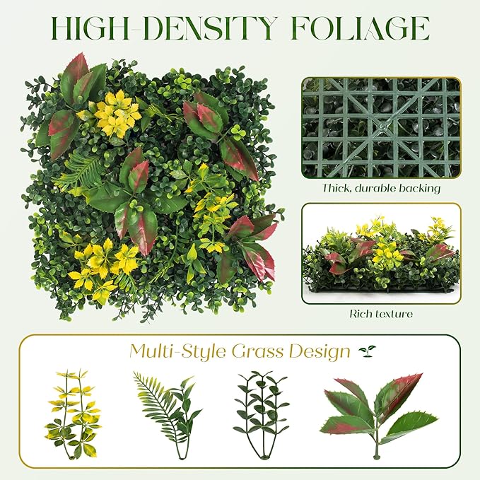 - Indoor & Outdoor Versatility: Perfect for decorating gardens, event backdrops, porches, or office walls. Use these plant wall panels to create privacy screens or greenery wall decor anywhere