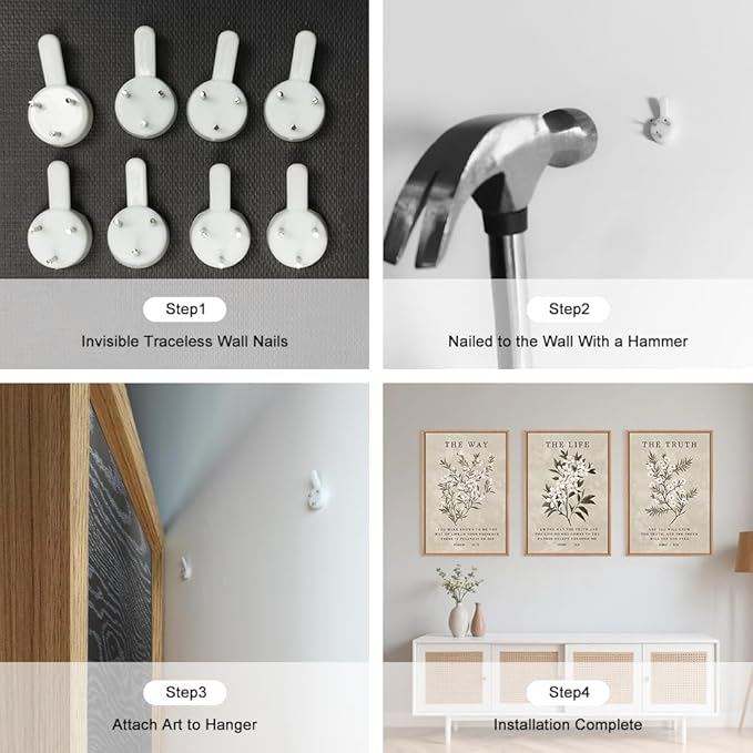 - 【Inspirational Bible Quotes Wall Art】The size of the framed canvas wall art set is: 16x24 inchx3pcs (40x60cmx3pcs).This triptych features framed artworks. Each has a light - toned background with an illustration of white - flowered branches. Above the illustrations are the words "THE WAY", "THE LIFE", and "THE TRUTH". Below are Bible verses from Psalm and John, conveying religious messages.