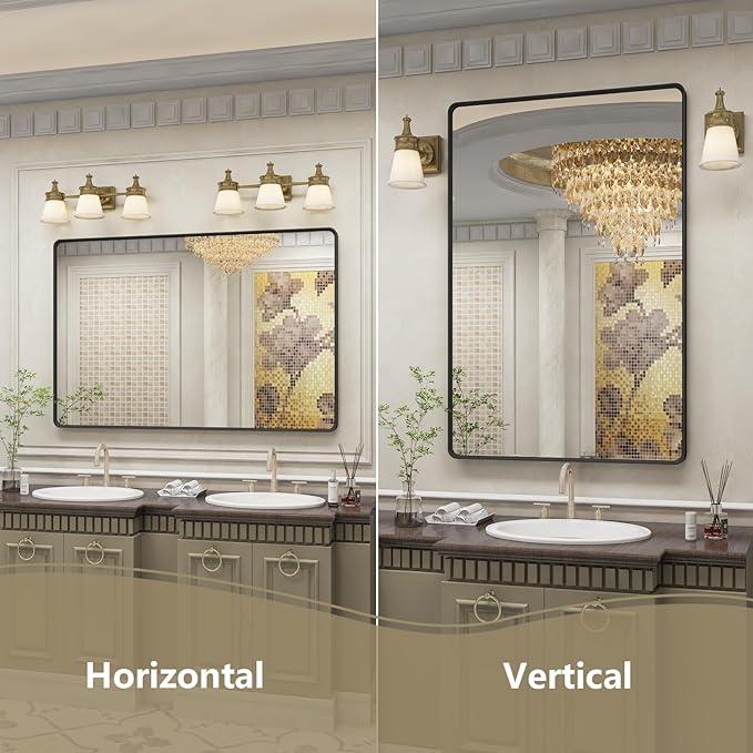 - 【Quick Vertical or Horizontal Installation】The black vanity mirror is easy to install with the included brackets and all necessary hardware. Whether vertically or horizontally hung, our black mirror seamlessly integrates into your space, elevating your bathroom with ease.