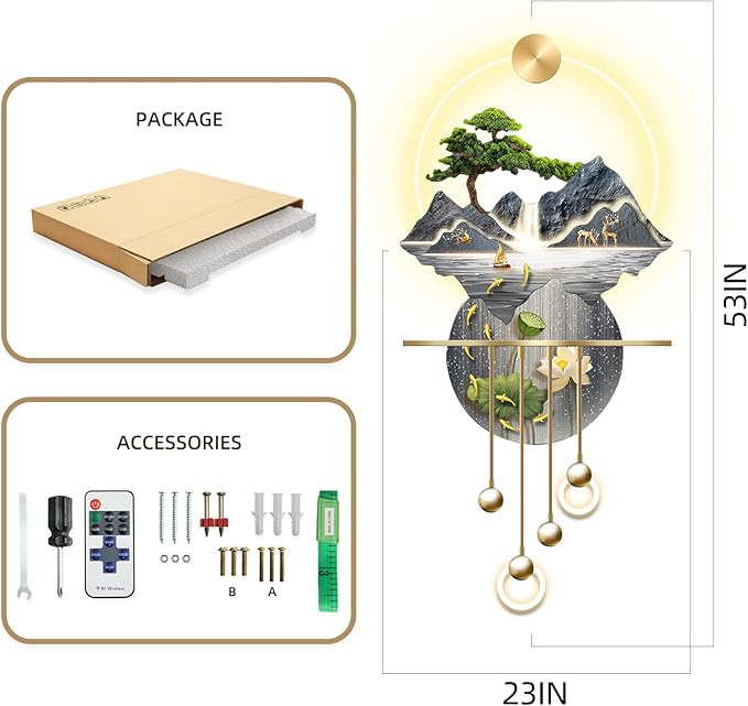 - Easy to hang: About decor large wall sculptures 3d decor lamp, Installation is very simple, even non-professional installers can complete the installation within 5 minutes. After installation and connecting to the power supply, you need to long press the remote control switch to activate it to work properly.