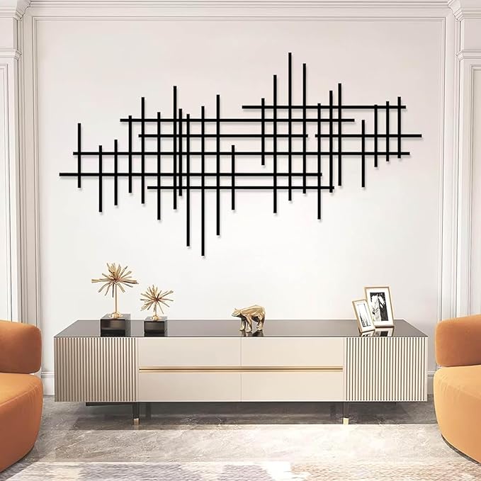 - Geometric Line Metal Wall Art: The metal strips are arranged in a staggered, short and long manner, presenting abstract geometric patterns. This design is a combination of minimalism and constructivism