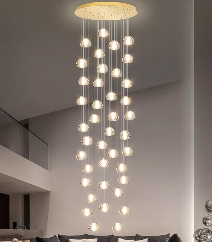 - 【High Ceiling Chandelier】Our 31.5 inch canopy ceiling light has adjustable wires from 3.9 to 236 inches, adaptable for high/low ceilings and suitable for flat or sloping roofs, indoors