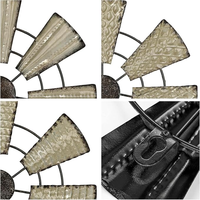 Briful 12" Wall Décor Pack of 3 Metal White & Black Windmill Radial Plate Wall Art Modern Accent Hanging Wall Decorations For Home Office Living Room Wall Sculptures