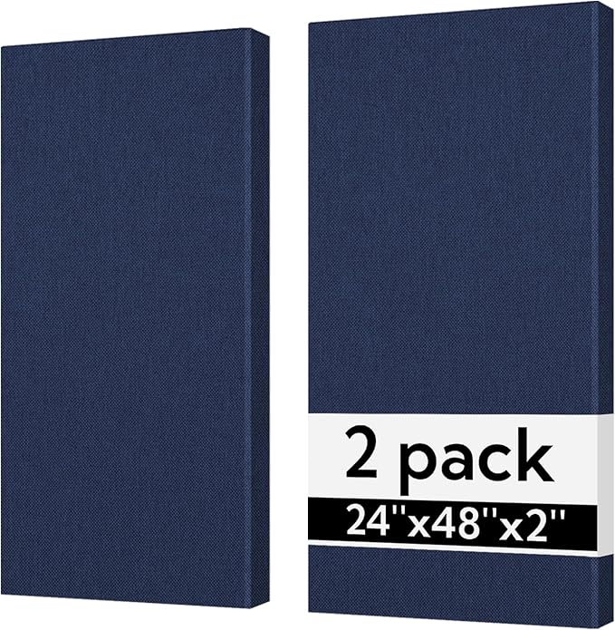 Olanglab Sound Absorbing Acoustic Wall Panels 2 Pack, 2'' 24''x48'' Fiberglass Sound Dampening Panels, Large Fabric Wrapped Sound Proof Panels for Walls (Navy)