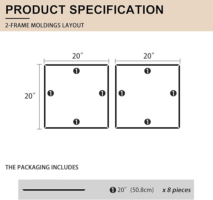 - Kit Contents: You'll receive pre-cut self-adhesive wall molding kits, with the 2-frame combo including 8 pieces