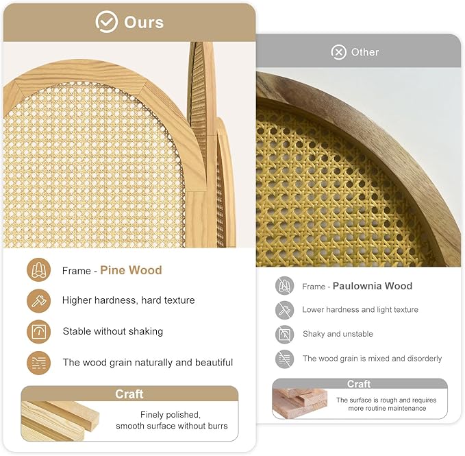 - Premium Pine Wood Frame: Crafted from durable pine wood (not common paulownia), this frame offers higher density and greater wear resistance. Natural pine grain adds elegant texture, while minimalist rattan design and warm tones bring a cozy, organic touch to your space