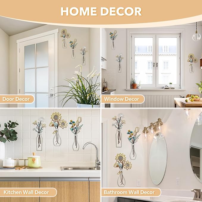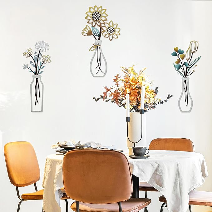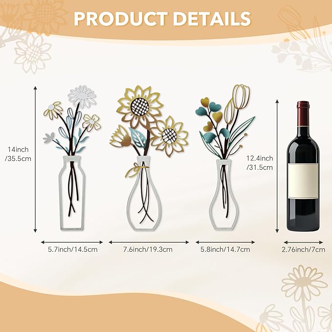 - Trendy Boho Style: Embrace the modern boho trend, adds unique artistic flair for decor with these chic metal vase flowers wall art. As a thoughtful and stylish wall art set gift for housewarming or special occasions.