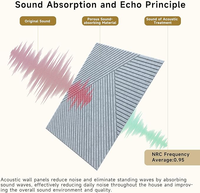 - Excellent Acoustic Performance: The acoustic panels efficiently absorb reverberation, echo, and standing waves, creating a clear and comfortable acoustic environment. With dense and uniform materials and a complete structural design, the NCR (Noise Cancellation Rating) reaches up to 0.95, achieving optimal sound absorption effects.