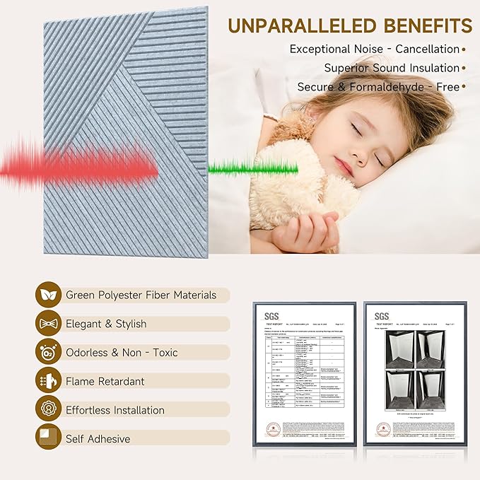 - Eco-Friendly Material: These acoustic panels are odorless and free from harmful substances, making them safe for families and pets. Made of 100% high-quality polyester fiber, they are durable, reliable, and designed for long-term use without compromising health— a responsible choice for conscious living spaces.