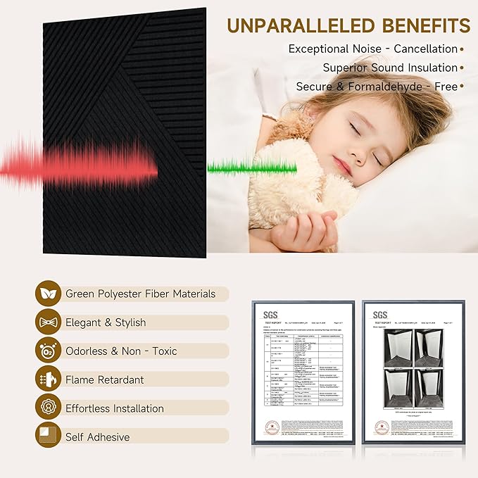 - Eco-Friendly Material: These acoustic panels are odorless and free from harmful substances, making them safe for families and pets. Made of 100% high-quality polyester fiber, they are durable, reliable, and designed for long-term use without compromising health— a responsible choice for conscious living spaces.