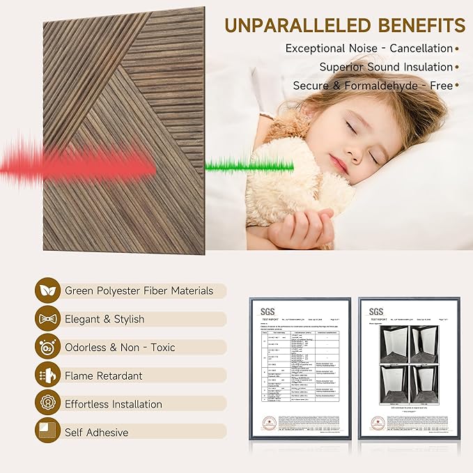 - Eco-Friendly Material: These acoustic panels are odorless and free from harmful substances, making them safe for families and pets. Made of 100% high-quality polyester fiber, they are durable, reliable, and designed for long-term use without compromising health— a responsible choice for conscious living spaces.