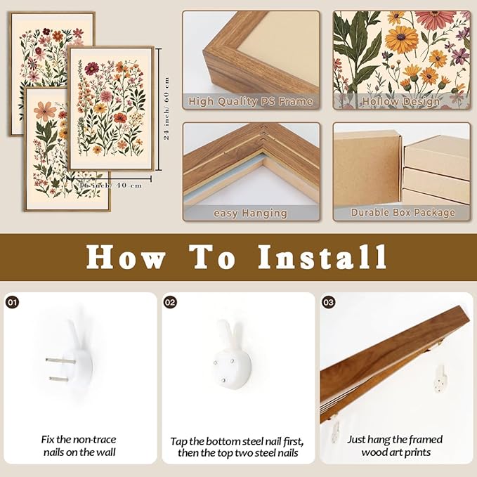 - 【Wildflower Artwork Material】We use high-definition printing, the details of the picture are clear, the color is vivid. The sturdy frame design makes the work durable.