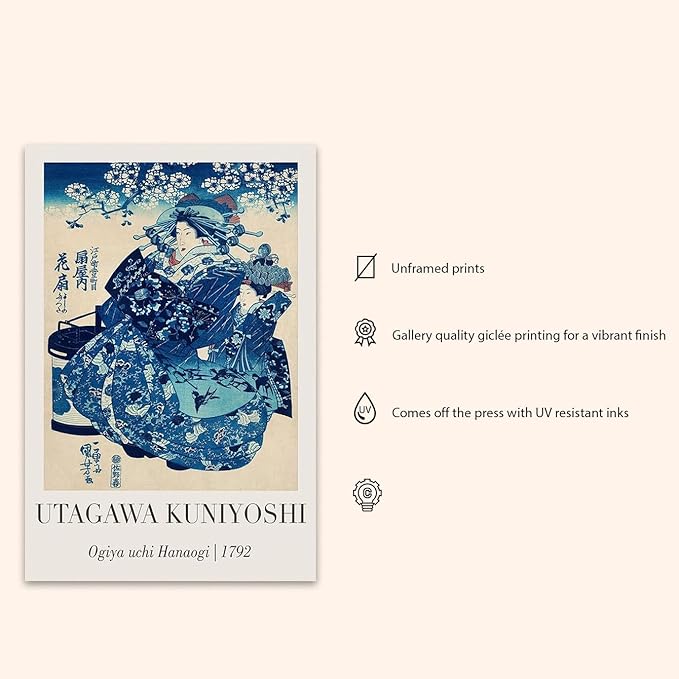 OZCONO Utagawa Kuniyoshi Japanese Art Print, Ogiya Uchi Hanaogi 1792, Unframed Gallery Quality Wall Decor (14L x 11W)