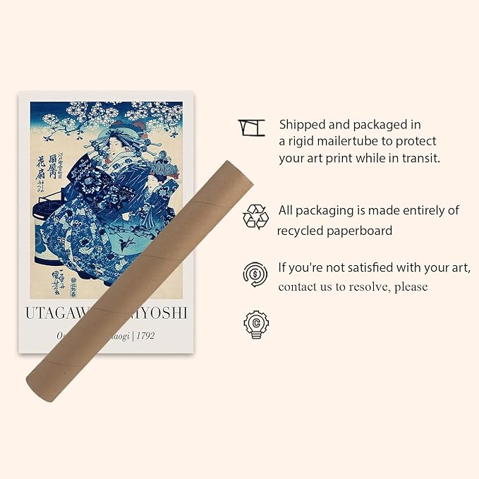 OZCONO Utagawa Kuniyoshi Japanese Art Print, Ogiya Uchi Hanaogi 1792, Unframed Gallery Quality Wall Decor (24L x 16W)