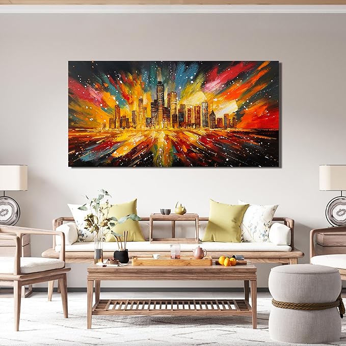 Canvas Wall Art Decor Wall Art Pictures for Living Room Canvas Art Wall Decor Modern Abstract Wall Art Prints Artwork for Walls Colorful City Wall Art Decor Kitchen Bedroom Office Wall Decor 20" X 40"