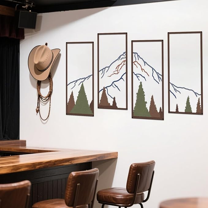 4 Pcs Metal Mountain and Forest Wall Decor Colorful Landscape Mountain Wall Art Pine Tree Forest Wall Decoration Rustic Nature Wall Decor for Living Room Home Office Bathroom Indoor (Middle)