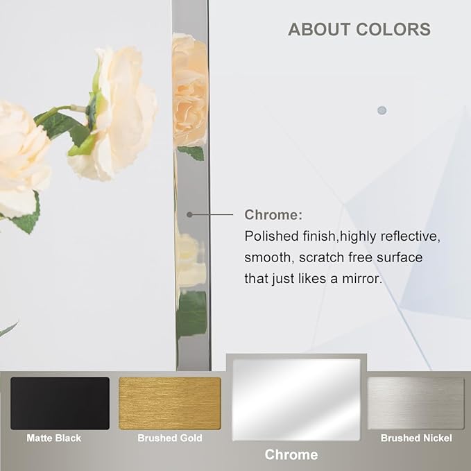 - 【High-Definition Clarity】: This large bathroom mirror features a crystal-clear reflection using high-quality silver glass, offering true-to-life images without distortion. The robust construction of our modern chrome mirror ensures its longevity, while the easy-to-clean surface keeps your reflection pristine