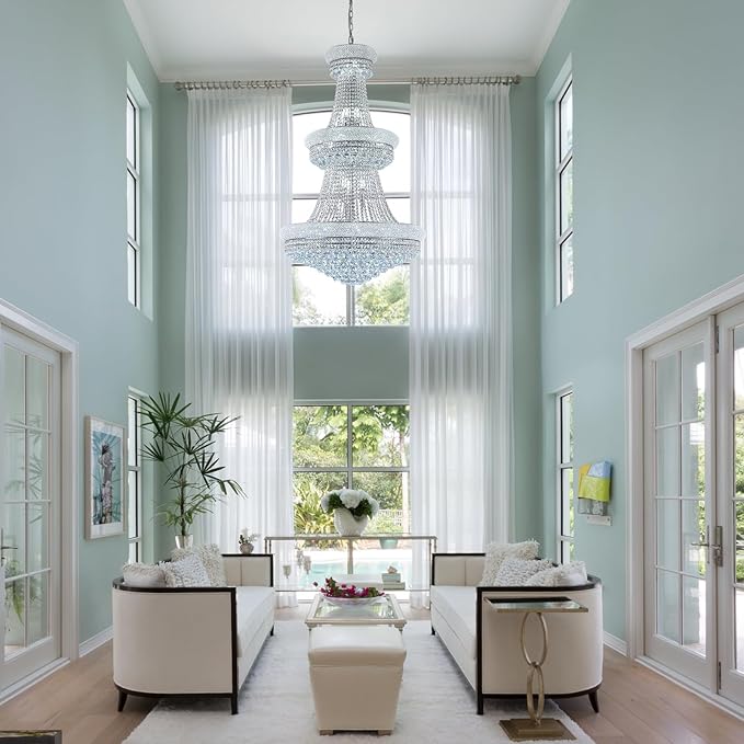31 Lights Chrome Finish Large Empire Crystal Chandelier - Three-Tier, High Ceiling Chandelier Light fixtures for Foyer Staircase Living Room Entryway (Dia 32'')