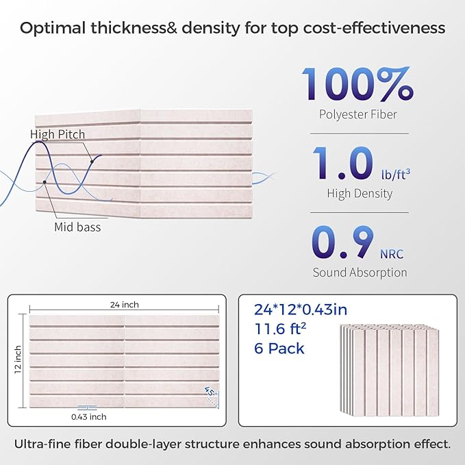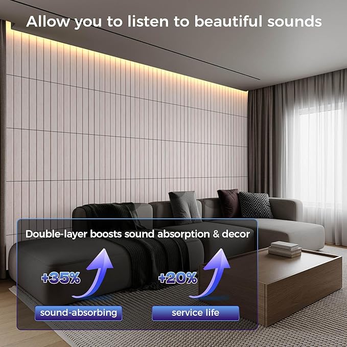 - 【Wide Range of Uses】: The elegant and generous lines of the decorative wall panels not only enhance the visual effect of the space, but we also provide a variety of color options, allowing you to create a unique space atmosphere through clever combinations, perfectly matching your various decoration styles. Noise cancelling wall panels is widely used in various scenarios such as musical instrument rooms, podcasts, recording studios, piano rooms, cinemas, living rooms, bedrooms, offices, etc