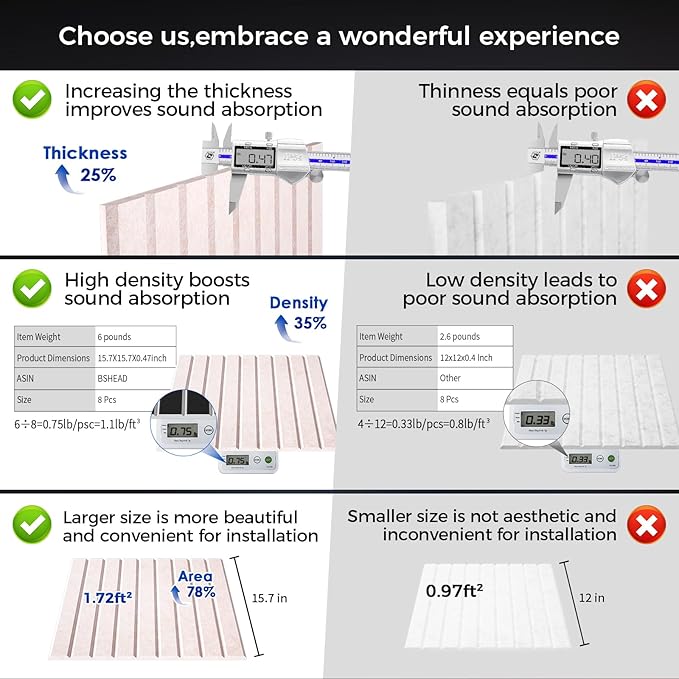 - 【Quality Service】: Our acoustic panels sound absorbing are committed to providing original sound quality and excellent house decoration. And will provide you with excellent after-sales service. If you have any questions within 48 hours after receiving the sound absorbing panel, you can consult us. If your sound panels is damaged or lost during transportation, please contact us in time and we will try our best to solve it for you. Your satisfaction is our goal