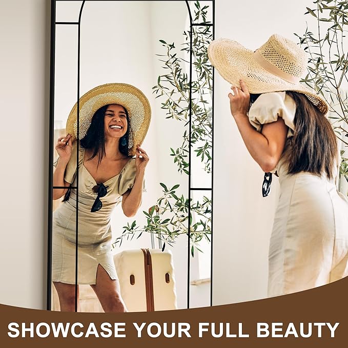 Wall Mirror,Full Length Floor, Window Pane for Living Room Decor, Decorative Wall Art, Large Wall for Bedroom, Hallway, Living Room Arch-65"X28"
