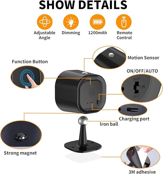 - 【Easy to Install】First Method: ① Remove the double-sided adhesive protective film from the lamp base. ② Stick the lamp base to the desired position and make sure that the surface is clean enough. ③ Place the lamp body to the lamp base; Second Method: ① Prepare screws and lamp base. ② Use two screws to fix the lamp base in the appropriate position. ③ Place the lamp body to the lamp base.
