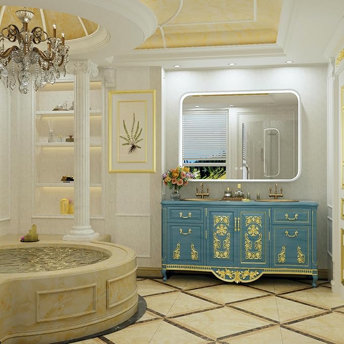 - 【Durable Construction】Crafted with a robust aluminum alloy frame, this LED bathroom mirror is both shatterproof and corrosion-resistant. Its sleek, rounded corner design adds a touch of elegance to any bathroom decor;