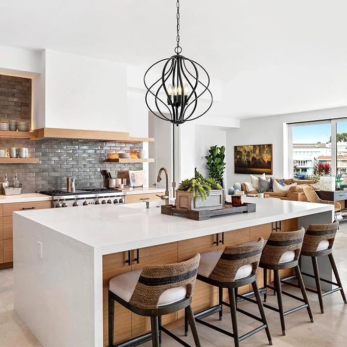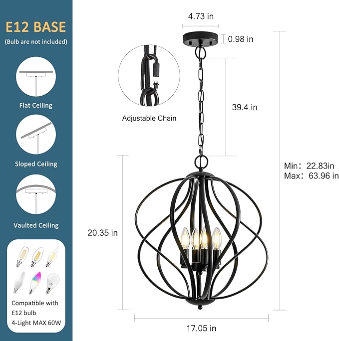 - 👍【Flexible Height Adjustment】The spherical Black Chandelier, standing 20.35 inches high with a 17.05-inch diameter, instantly draws attention as a striking visual centerpiece. Its adjustable chain (22.83–62.20 inches) ensures versatile installation—perfect for both lofty duplex halls and standard-height rooms, achieving the ideal lighting elevation.