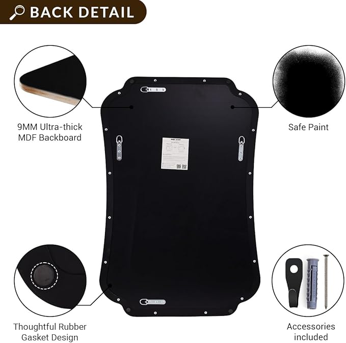 - OUTSTANDING MATERIALS: Crafted with a sturdy SUS304 frame, this symmetrical wall mirror is rustproof, durable, and built to last. Black rectangle scalloped mirror features no-distortion HD glass with a 9mm MDF backboard for shatter-proofing and added strength. Solid and of premium quality, scalloped wall mirror is a perfect addition to your home