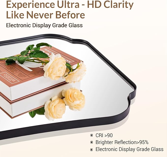 - HIGH - DEFINITION CLARITY: The bathroom vanity mirror uses digital display grade silver glass that provides excellent reflection and lighting for your space. Unlike tempered glass, matte black mirror guarantees high definition without any distortion, offering true - to - life images