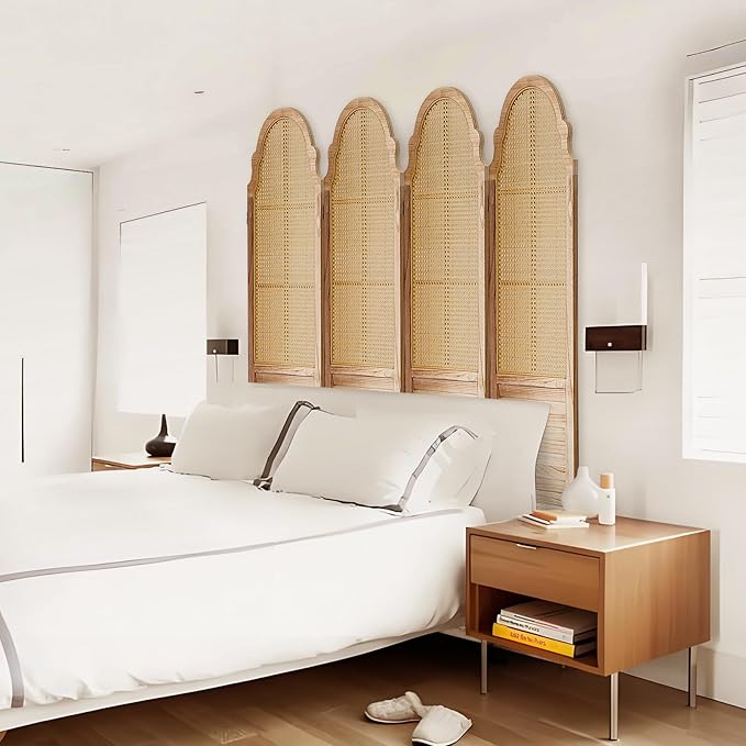 - ELEGANT DESIGN: With 6 beautifully woven rattan panels and a graceful arched top, our room divider is a great accent piece for your home décor, enhancing the beauty of any room while providing a stylish separating effect. It can be used as a bedside backdrop to add a sense of hierarchy to your bedroom; it can also be placed in an office to add a sense of design and enhance your corporate image.