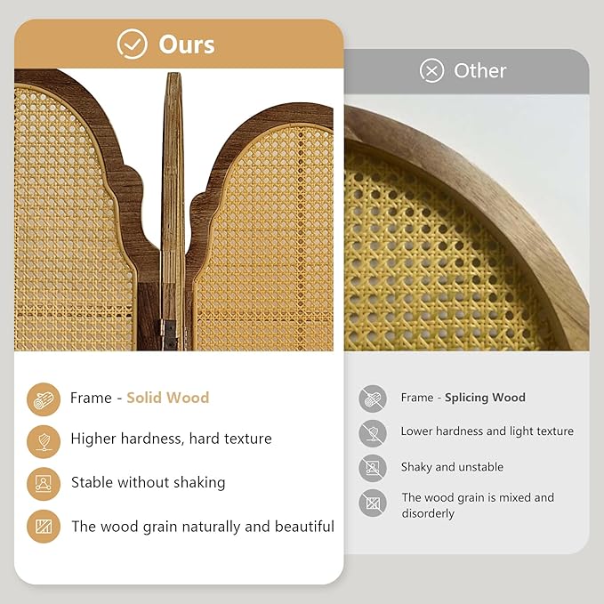 - QUALITY MATERIAL: This room divider is made of selected rattan, which is not only durable but also natural. Hand-woven from selected high-quality rattan, it has good toughness, air permeability and light transmission compared with wooden room dividers. Sunlight and light can pass through the gaps in the rattan weave, creating a cozy living environment and a smart investment for your home.