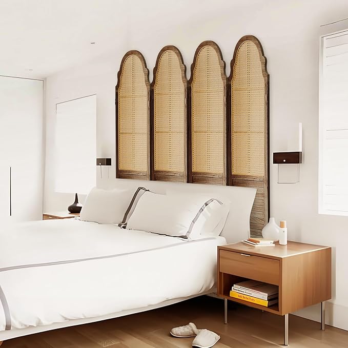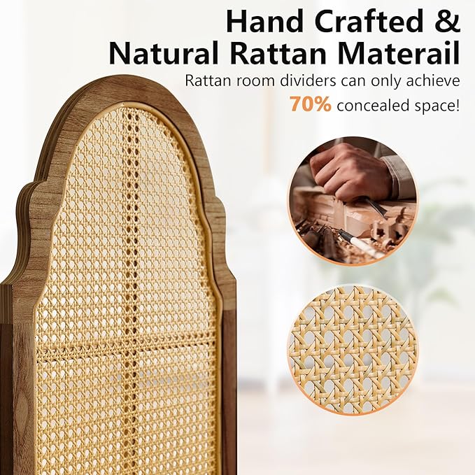 - ELEGANT DESIGN: With 6 beautifully woven rattan panels and a graceful arched top, our room divider is a great accent piece for your home décor, enhancing the beauty of any room while providing a stylish separating effect. It can be used as a bedside backdrop to add a sense of hierarchy to your bedroom; it can also be placed in an office to add a sense of design and enhance your corporate image.