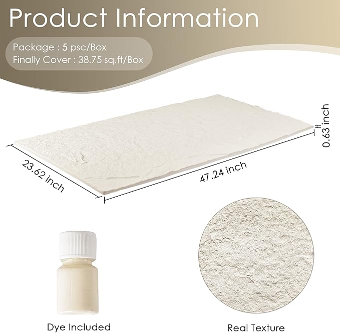 - Expansive Coverage – Each 5-panel set (47.24" x 23.62") covers 38.7 sq ft, providing maximum wall transformation with minimal effort. The slim yet sturdy construction allows for seamless installation, instantly elevating any space with striking 3D depth.