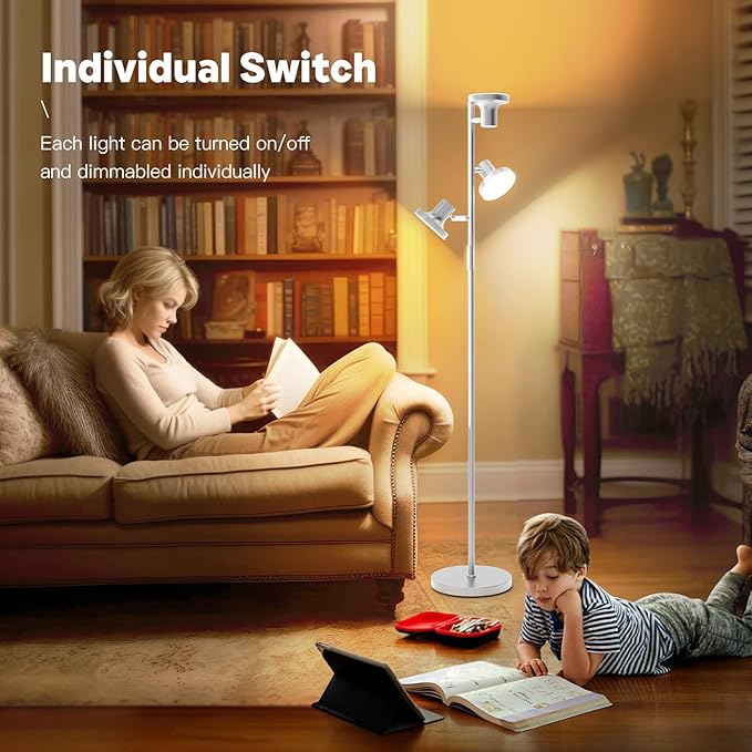 - Remote Control & Individual Switch -- Remote and touch control both can turn the standing lamp on and off, and adjust the brightness or color temperature as you wish. You can turn off the light and go to sleep without getting up. At the same time, it is compatible with smart plugs and wall switches in your home for voice and APP controlled switching.Each light can be turned on or off individually. You can turn on all the lights for bright lighting or turn off 1-2 lights for reading or bedtime.