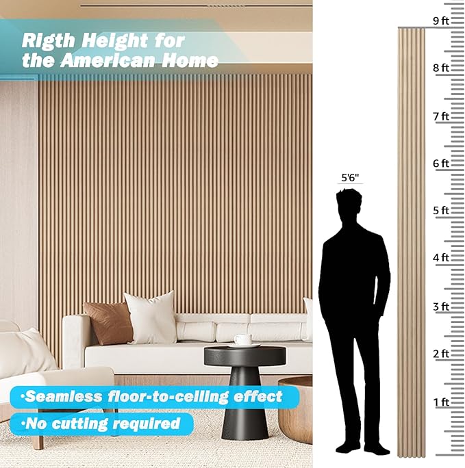 Art3d Fluted Wood Panel for Wall and Ceiling, Beaded Accent molding for Home Decoration, Pack of 4pcs + 1pc End-Trim, Size 108 x 5.7in.- Beaded Ashtree