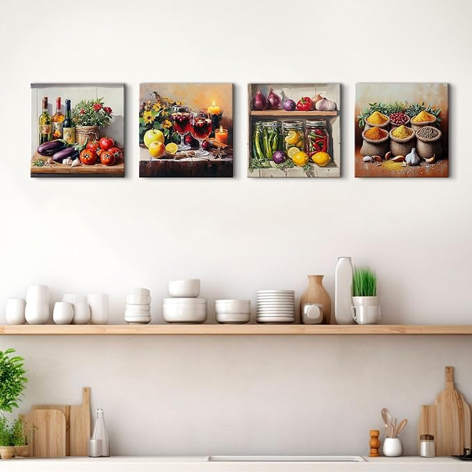 - 【Premium Canvas Print】- Printed using advanced Giclée technology, this kitchen wall art delivers rich, vibrant colors and fine details, printed on premium glossy canvas with long lasting durability , environmentally friendly, non-toxic imported ink and waterproof. Each canvas painting stretched and framed canvas art has fixed hanging accessory mounted on the wooden bar, easy to hang for home decorations.