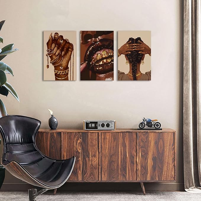 - ▶Fashion African Woman Wall Art Size - Each views is 16x24" (40x60cm), 3 panels in total. This black girl posters brings a abstract, afrocentric designs that celebrate African american beauty and culture. Perfect for adding depth and personality to any room, these prints are ideal for black girl wall decor and black woman wall art, creating a stylish focal point in any living room or bedroom.The wall decor comes wrapped in a canvas wood frame, hook mounted and ready to hang.
