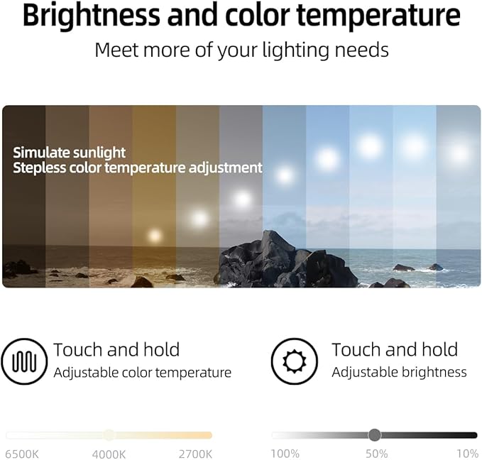 - 【High-Density LED Strip】: Our light strip contains 240 LEDs/m and has a CRI (RA) of 93%, which accurately reproduces colors. It has a UGR<13 rating, meaning it’s gentle on the eyes and flicker-free. The lights last over 72000 hours. And you can select any color temperature from 2700k to 6500k and adjust the brightness from 10% to 100%.