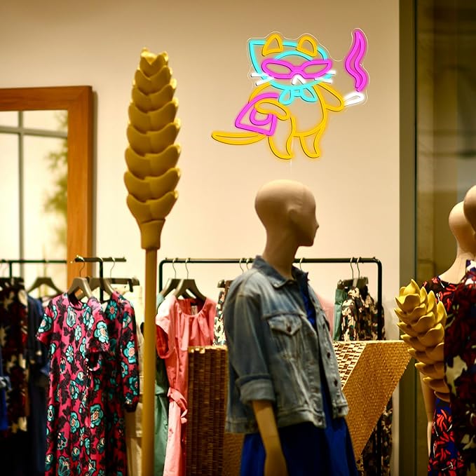 - Versatile Decor: Whether you're decorating your bedroom, living room, game room, or you're looking to enhance the ambiance of bar, pet shop, clothing store, cafe or restaurant, the kitten neon light sign elevates the overall aesthetic.